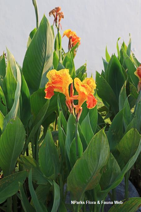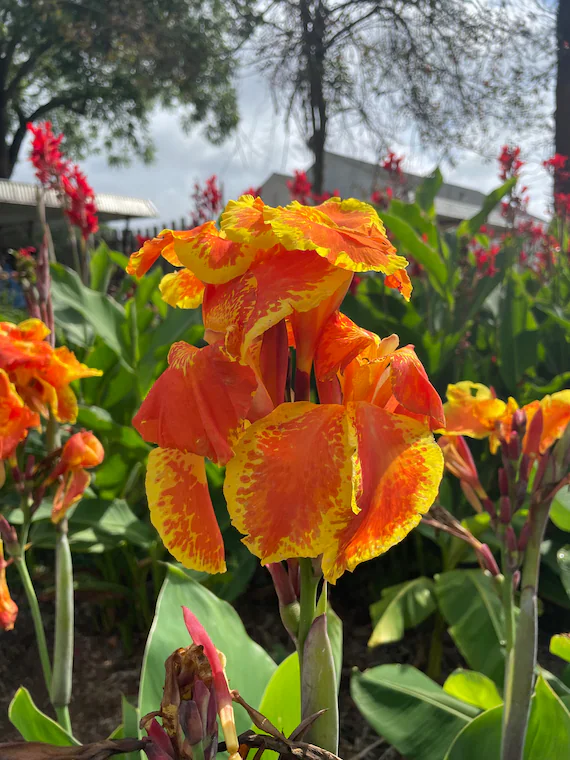 Canna x generalis ‘Yellow King Humbert’ is a regal tropical hybrid featuring golden-yellow flowers lightly speckled with orange-red and broad green foliage. Known for its grand appearance and abundant flowering, this Canna variety adds a royal touch to tropical landscapes.